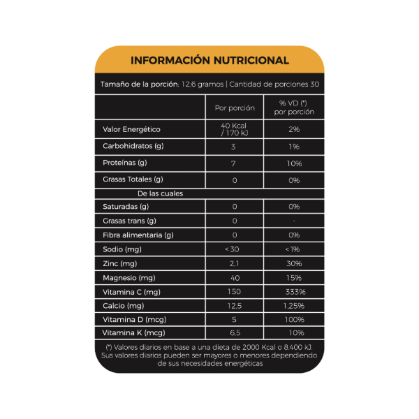 Contenido: Caja con 30 sobres individuales (12,8g c/u) o doypack con cuchara medidora